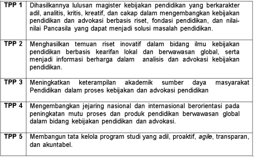 Tujuan Pendidikan Program Studi (TPP) Magister Kebijakan Pendidikan – UNY :